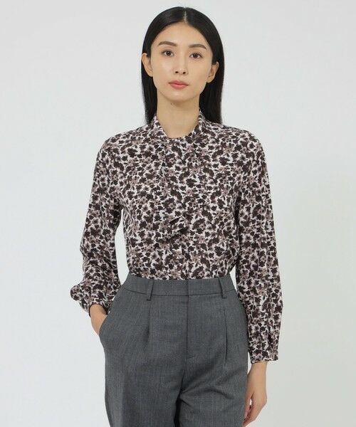 <フラワーモチーフのプリントが上品なボウタイブラウス>