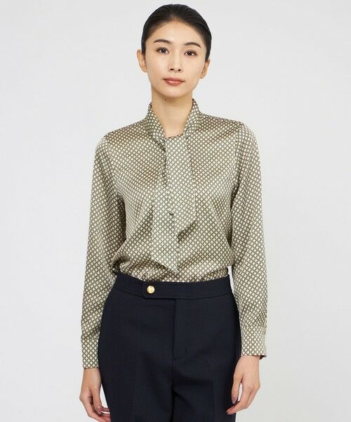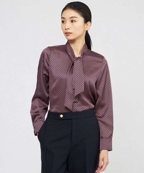インポート素材ならではの素材感とプリントが上品なボウタイプルオーバーブラウスです。