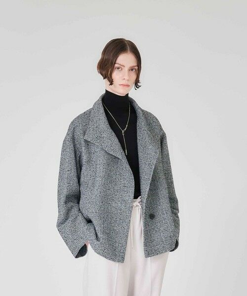 襟元を柔らかく仕上げ、着用した際の自然な落ち感がニュアンスのあるシルエットをつくりだします。