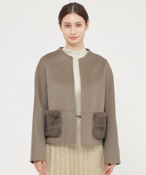 ポケットにシンセティックファーをポイント使いし、エレガントに仕上げました。