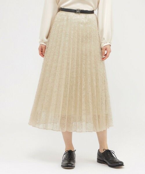 <上品なフロッキープリントが魅力のプリーツスカート>