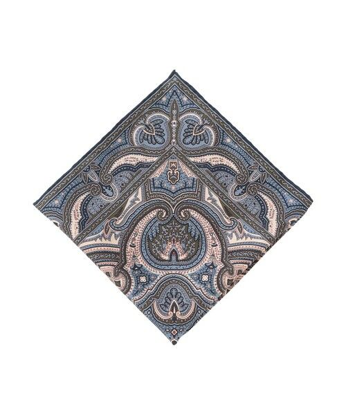 2022Autumn&Winter item Available (ポケットチーフ)全面にペイズリー柄をプリントしたシルク素材のポケットチーフ。インパクトのある柄ですが、胸もとからのぞかせることによりアクセントになってくれます。1柄の中にも様々な色合いがあるため、コーディネートの色を拾っても、チーフでの色挿しにもおすすめです。