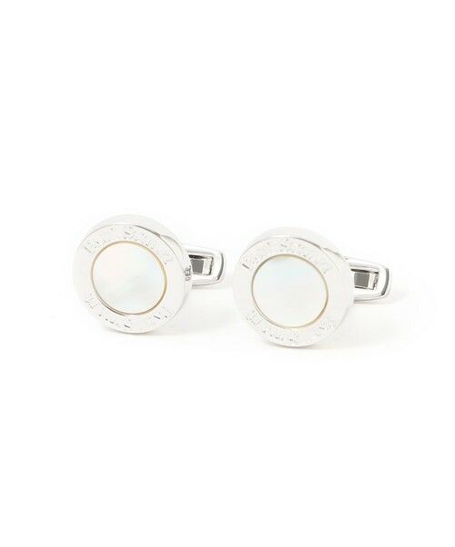 白蝶貝は、癒しやお守りのパワーストーンとして人気があります。ラウンド型に白蝶貝を貼りこんだ、ビジネスマンに最適なカフスです。