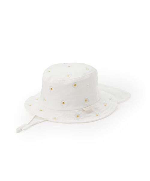 刺しゅうの総柄が可愛らしい5種類展開のバケットハットです。首まで守ってくれる日除けつきで、強い日差しをカットしてくれます。内側にはメッシュの裏地がついており、通気性も抜群。やわらかい素材で持ち運びしやすく、春夏のお出かけの必須アイテムになること間違いありません。首元はアジャスターつきの紐で、風が強い日にも飛ばされにくいのが魅力です。