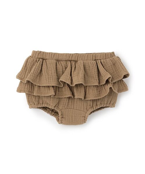 重なるフリルで華やかに仕上げたカバーパンツです。ナチュラルな風合いの生地なので、着回ししやすく日常に溶け込みます。ウエストと裾はゴム仕様になっており、程よくフィットしお着替えも簡単です。内側にお名前を記入できるタグつき。【おすすめの着用時期は春夏シーズン】【透け感】透けない【生地の厚さ】普通【伸縮性】あり【裏地】なし【ポケット】なし【アジャスター】なし
