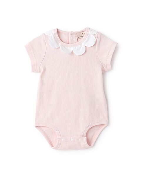 首元にぐるりと施されたスカラップの襟が目を引くガーリーなボトムスに合わせたい万能ロンパース全体的に伸縮性に優れた生地で縦にも横にもとにかく伸びる動きを邪魔しないのはもちろんお着替えもさせやすい◎シンプルなデザインはどんなボトムスにも合わせやすくサロペットのインナー等にもピッタリな薄手生地肌寒いときは羽織から襟をのぞかせるコーディネートもおすすめ【透け感】透けない【生地の厚さ】普通【伸縮性】あり【裏地】なし【ポケット】なし