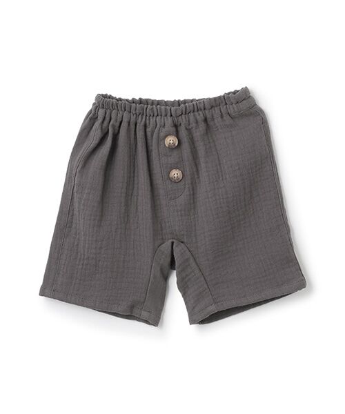 2枚のガーゼを重ねて仕立てたショートパンツです。やわらかな風合いでやさしい肌触りが魅力。吸水性に優れており、汗をかいても快適な着心地です。ウエストはお着替えしやすい総ゴム仕様。ボタンがアクセントのベーシックなデザインで、デイリー使いにぴったりです。【おすすめの着用時期は春夏シーズン】【透け感】透けない【生地の厚さ】普通【伸縮性】あり【裏地】なし【ポケット】なし【アジャスター】なし