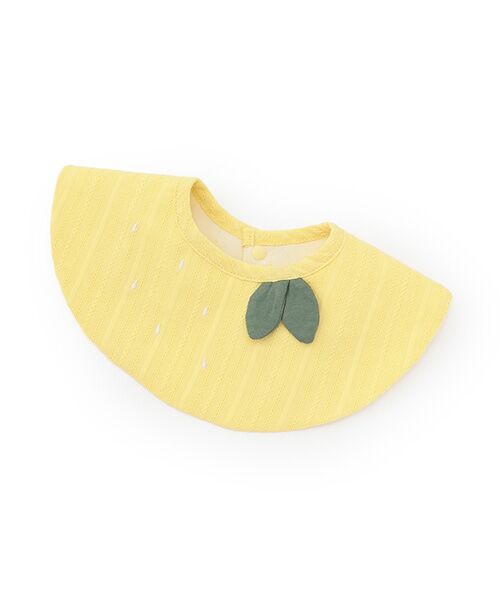 立体的なヘタ装飾が可愛いフルーツスタイです。さわやかな雰囲気のため、これからの暑い季節にぴったり。シンプルデザインを鮮やかなカラーで仕上げました。首まわりは扱いやすいスナップボタン仕様。防水生地なので機能性にも優れています。