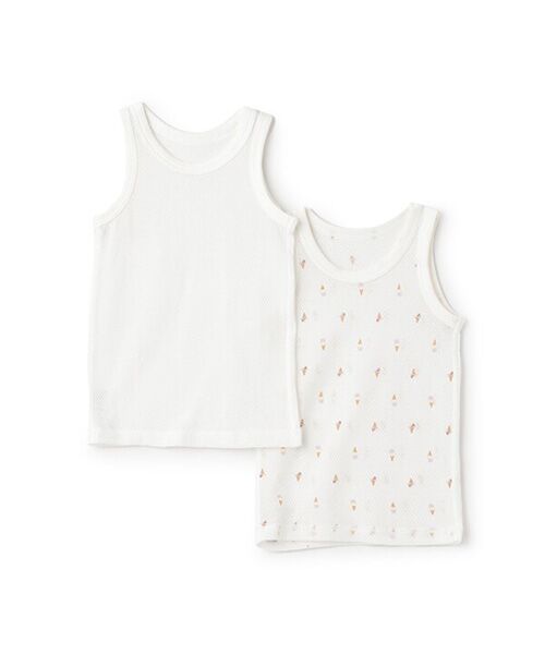通気性が高いメッシュを使用した肌着のセットです。それぞれ異なるモチーフでご用意しました。薄い生地感でサラッとした着心地です。肌当たりが良いコットン100%素材を採用しており、日中も快適にお過ごしいただけます。内側にお名前を記入できるタグつき。【透け感】やや透ける【生地の厚さ】普通【伸縮性】あり【裏地】なし【ポケット】なし