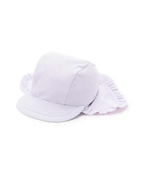 暑い季節の強い日差しから守ってくれるスイムキャップです。生地に紫外線対策ができるUVカット機能をプラスしました。アジャスターつきなので、サイズ調整も可能。日除け布はフリルをあしらい、キュートに仕上げました。淡くやさしい色味で、どんな水着とも相性抜群のアイテムです。内側にお名前を記入できるタグがついています。