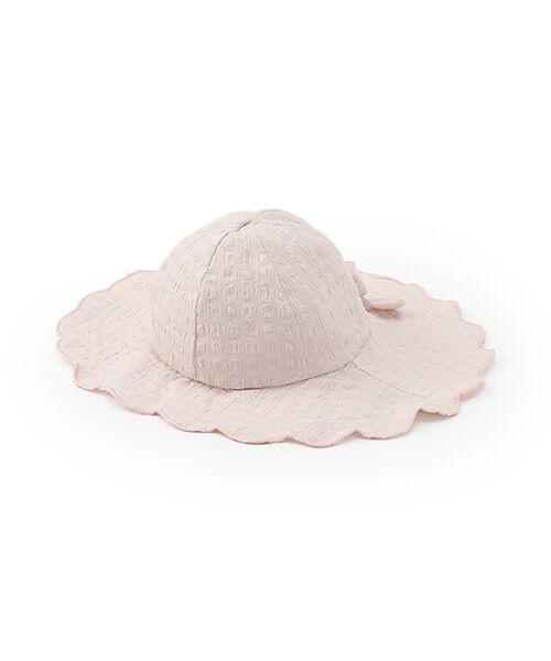 スカラップデザインのツバが魅力的なサンハットです。バックは立体感のある飾りリボンで可愛さをプラス。落下防止に役立つあご紐が備わっています。UVカット機能つきなので、暑い日も快適です。アクティビティから普段使いまで、幅広く活躍します。内側にお名前を記入できるタグつき。