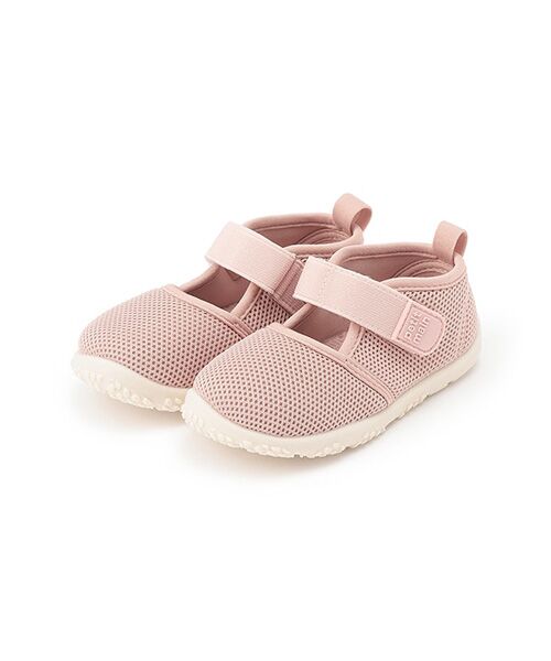 通気性のあるメッシュ生地を使用したシンプルなサンダルです。ストラップ部分はお子さまがラクラク扱える面ファスナー仕様。低めのソールで動きやすいのも魅力です。ベーシックな雰囲気なので、デイリー使いに活躍します。