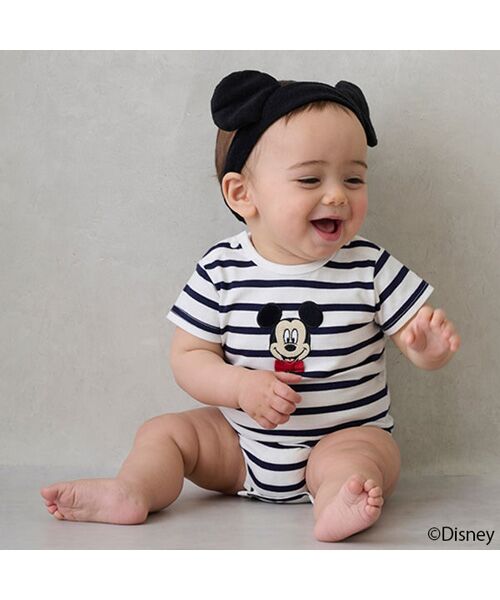 \ 今年も登場ディズニーアイテム! /さわやかなボーダー柄にディズニーキャラクターの刺しゅうが映えるヘアバンドつきロンパースですやわらかな風合いで肌触りが良く、快適な着心地を実現しました股部分にスナップボタンをほどこしており、オムツ替えも簡単ですヘアバンドを一緒につけると、キャラクターになりきれるのもうれしいポイント内側にお名前を記入できるタグがついています【透け感】透けない【生地の厚さ】普通【伸縮性】あり【裏地】なし【ポケット】なし
