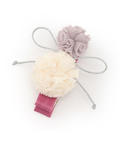 ヘアスタイルが華やかに仕上がるぽんぽんのヘアクリップです。キラキラと輝くラメリボンでアクセントをプラス。カラーによって異なる雰囲気なので、お気に入りの一点が見つかります。普段使いはもちろん、浴衣や着物とも相性抜群です。お肌への負担が少ないように、金具部分をテープでカバーしています。