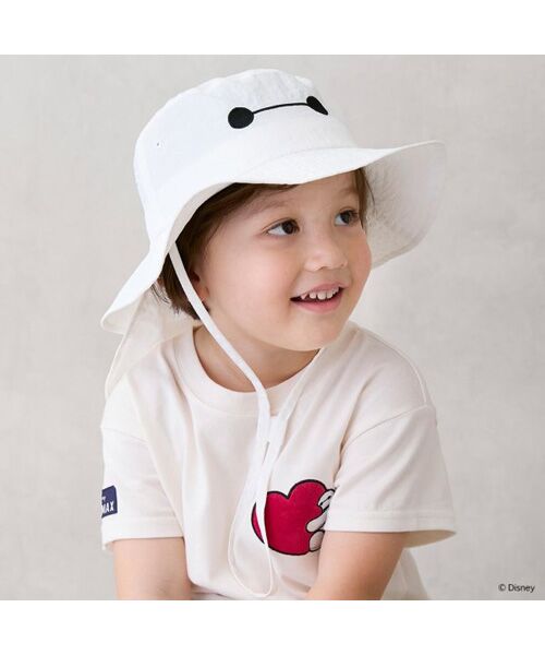 ユニークなキャラクターのデザインが目を引くハットです。日差しをカバーする垂れ布にもモチーフをあしらい、個性的に仕上げました。紫外線対策に役立つUVカット加工をほどこしているのも魅力。内側は通気性に優れたメッシュ素材で蒸れにくく、快適な被り心地です。
