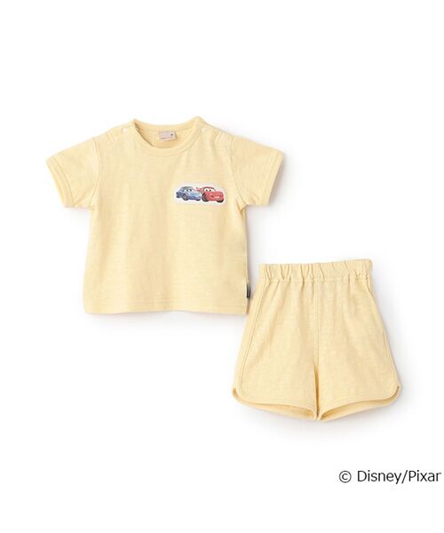 カーズのキャラクター達をアップリケでほどこしたセットアップです。お出かけにはもちろん、部屋着としても着用いただけます。肌触りがやさしいコットン100%の生地で、快適な着心地を実現。ボトムは総ゴム仕様なので、お着替えも簡単です。内側にお名前を記入できるタグがついています。【透け感】透けない【生地の厚さ】普通【伸縮性】あり【裏地】なし【ポケット】なし【アジャスター】なし