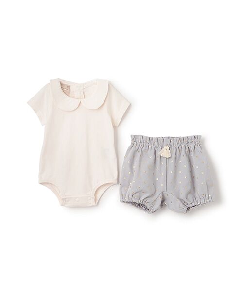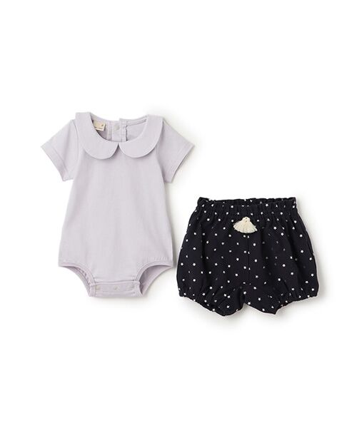 上品な衿つきロンパースと星柄パンツのセットです。パンツはキラキラと輝くプリントをほどこした個性あふれるデザイン。ウエストのタッセルもおしゃれなポイントです。やわらかいコットン100%素材を使用しており、やさしい肌当たりが魅力。内側にお名前を記入できるタグがついています。【透け感】透けない【生地の厚さ】普通【伸縮性】なし【裏地】なし【ポケット】なし【アジャスター】なし