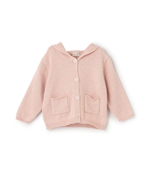 アニマルのお耳がついたフードが可愛さあふれるカーディガンです。