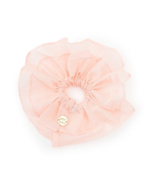 やわらかで軽いオーガンジー素材を使用したシュシュです。ブランドロゴをあしらったプレートを配置し、こなれ感を演出しました。普段使いはもちろん、発表会やお出かけ、ちょっとしたギフトにもぴったり。髪につけるだけでパッと華やかなスタイリングが楽しめます。