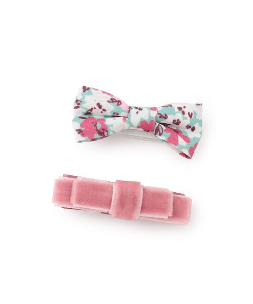 女の子らしさあふれるリボンデザインのヘアクリップです。個性的な総柄と上品なベロア素材の2個セット。金具部分をテープで巻いており、お肌が傷つくのを防ぎます。程よいサイズ感で普段使いしやすく、さまざまなヘアアレンジを楽しめるアイテムです。