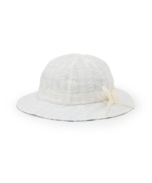 気分やコーデに合わせて2通りのデザインを楽しめるハットです。表面は小花柄、裏面はリボンをあしらった可愛らしいデザイン。UVカット機能もほどこしており、強い日差しからガードしてくれます。お出かけやお外遊びなどにおすすめの万能なアイテムです。