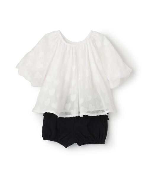 ほんのり浮かび上がるハート柄が可愛いチュニックとブルマのセットアップです。