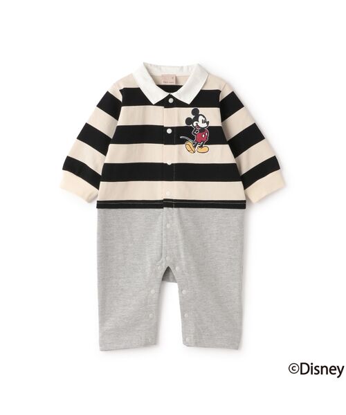 きちんと感がただようラガーシャツ風のカバーオールです。胸元にあしらったミッキーマウスのワッペンがポイントになっています。ウエストから下を配色で切り替えた、一枚でスタイリングが完成するアイテム。扱いやすいスナップボタン仕様のため、お着替えもスムーズです。内側にお名前を記入できるタグつき。9553220:【Disney】【リンク】ラガー長袖Tシャツでキッズサイズ、9553453:【Disney】【DOG】【リンク】ラガーシャツで犬とのお揃い着用ができます。