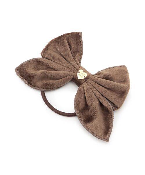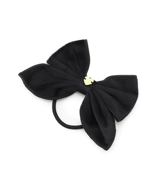 ボリューム感のある大きなリボンが魅力的なヘアゴムです。なめらかな手触りの生地にハート型のメタルパーツを合せました。女の子らしさと大人っぽい雰囲気を併せ持っているアイテム。アクセサリーのように腕やバッグにつけても可愛く決まります。
