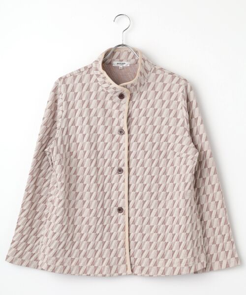 先染めの糸を3色使用して繊細な色を表現し、ジャガー編み機で凹凸感を出した、表情豊かな伸縮性のある尾州産のニット生地です。カーディガンとジャケットの中間の織物です。品番:5424523のプルオーバーと合わせてアンサンブルとしても着用していただけます。