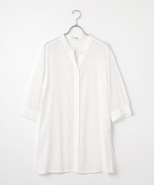 植物由来でサスティナブルなテンセルリヨセル繊維を使用しており、適度な落ち感と肌にやさしく馴染むソフトな風合いを持ったブラウスです。薄手でふんわりと軽く、ナチュラルなシボ感のあるこなれたルックスが特徴。(再生原料使用率50%)