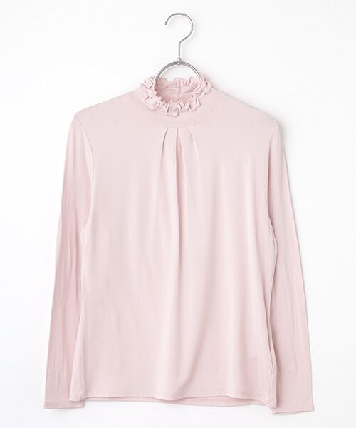 シルキータッチと吸水性の良さを持つモダールを使用。通常のモダール素材に比べ、サラっとした肌触りとクリアな表情を出した差別化素材。首元のチュールを2重にすることで華やかさをプラスしています。