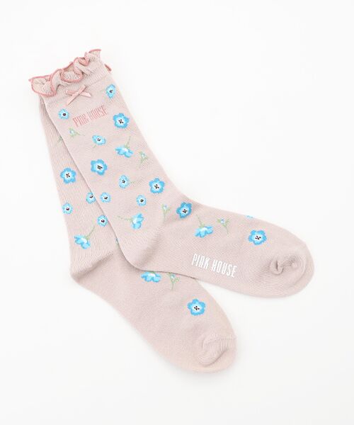 ネモフィラのちいさなブルーお花を全面に散りばめた可愛らしいソックス。ロゴとミニリボンを添えてワンポイントに。