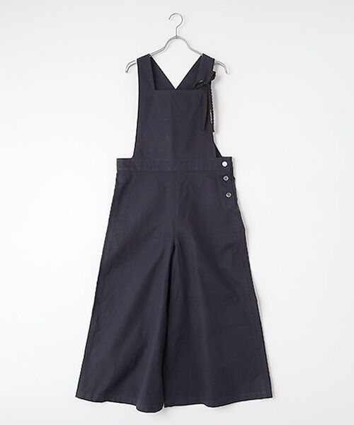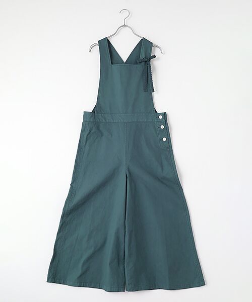 ドイツ軍の軍服のジャケットを着実に再現した武骨感あるミリタリーな素材、ジャーマンダックで仕立てたサロペット。高密度に織り上げた素材は頑丈でありながら、しなやかな風合いが特徴の素材で着やすく仕上げています。シンプルなサロペットは、中に着合わせるアイテムで表情が変わるところが楽しいアイテム。ピコット刺繍で縁取りした綿ローンで作られたリボンブローチが付いているので、ちょっと甘さをプラスしたいときにはコーディネイトにプラスしてアクセントに。ブローチは取り外しできるので、お好きなところにどうぞ。