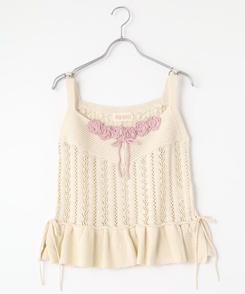 胸もとにお花のニットモチーフをいくつもあしらったキュートなキャミソールタイプのニットベスト。