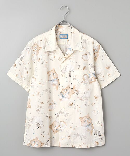 人気のプリントのシャツブラウス。オープンカラーで涼やかに着られます。