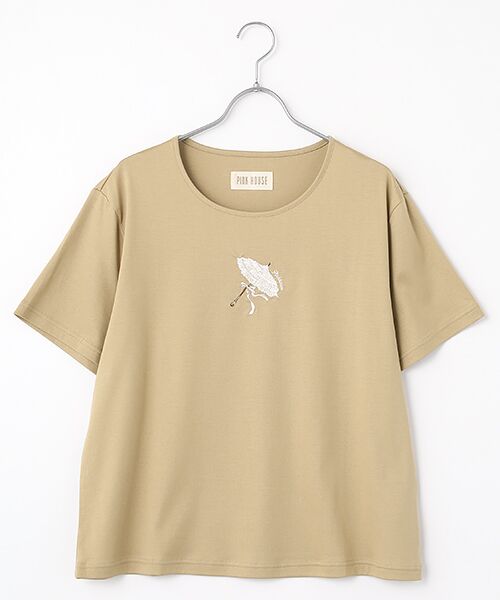 「パラソルシリーズ」にも描かれたアンティーク風のパラソルをモチーフに、繊細なワンポイント刺繍をフロントに施したカットソー。華やかな刺繍の糸に金糸を混ぜているので、夏の日にキラっと輝くさまが上品な佇まいにピッタリです。身ごろには高級綿であるスーピマコットン糸を使用しており、ソフトで肌ざわりで着心地よく着られます。また、バイオシルケット加工を施し艶のあるとても綺麗な面構えでキレイめに着られます。