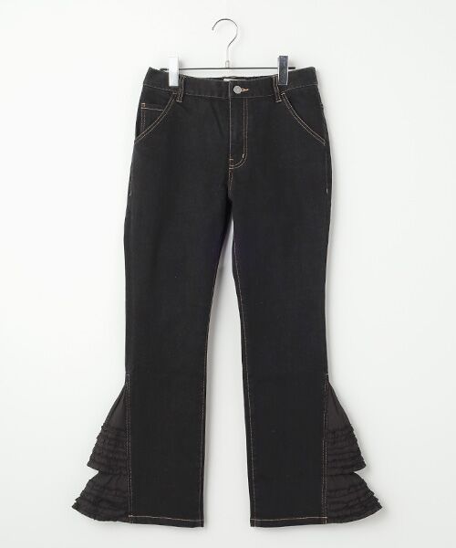 昔なつかしい、サイドにキュートなローンのフリルのヒラヒラが付いたデニムパンツ。ローンはデニム地と同系色なので、馴染みやすく着合わせもしやすいです。ローン部分は取り外しはできないタイプです。程よい厚みの10オンスデニムは、通年通してお楽しみいただけます。ストレッチがきいているので伸縮性もあって履きやすいです。
