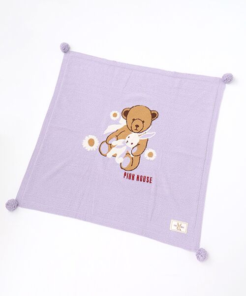 フロントにはキュートクマとうさぎとそのまわりにはひな菊のお花を散りばめて。そのサイドにはPINK HOUSEのロゴも添えて。