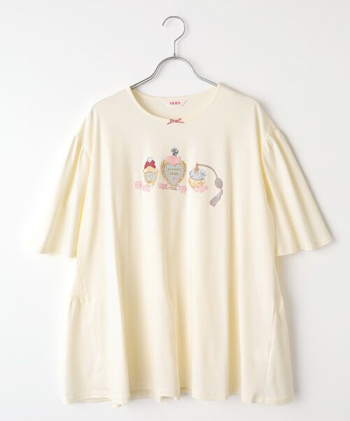 「パフュームプリント」に描かれた、ローズやベロアリボンの装飾のついたエレガントな香水瓶たちをピックアップ。フロントに3つ並べてプリントを施したカットソーチュニック。ゆったりとしたシルエットが可愛らしくさらりと着やすいタイプ。身ごろには、高級綿であるスーピマコットン糸を使用した60/-スーピマバイオシルケットスムースを使用。ソフトな肌ざわりで着心地よく着られます。バイオシルケット加工を施しているので艶のある綺麗な面構えでキレイめな仕上がりに。