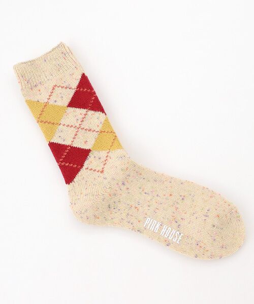 久々に登場!!クラシカルな雰囲気漂うアーガイル柄のソックスは、コーディネイトにプラスするだけですっかり秋の装いに。ネップの入った杢調の色合いは、「バラ園うさぎプリント」のように優しい穏やかな風合いに仕上がります。