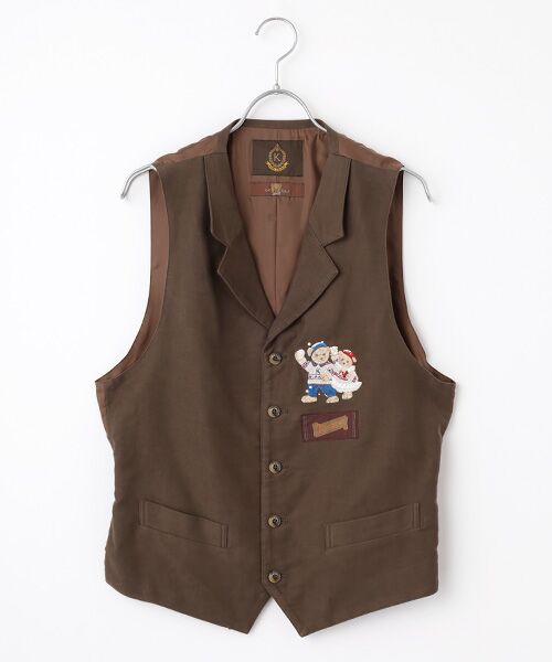 次男と末っ子の妹が仲良く雪あそびをしているところをピックアップ、ワンポイント刺繍にして左胸のところにあしらったベスト。