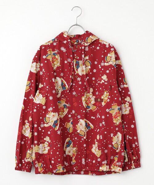 しんしんと雪降る季節、そろそろ三つ子のくまの冬支度が始まります。 赤いベレー帽をかぶった長男と、青いベレー帽をかぶった次男。そりすべりで前に座わってしまうやんちゃな次男、そんな次男を後ろで見守るように肩を支えて座る心優しい長男。 編みものが大好きな少し年の離れた妹は、雪遊びでは思わずリンゴを投げてしまう・・・そんなおてんばな一面も。 そんな三つ子のくまたちの冬支度を描いたハートフルなプリントです。 こちらのプリントは、ピンクハウスとカールヘルムの共通プリントなので、カップルコーデも楽しめるそんな楽しさも盛り込んでいます。ピンクハウスの方は中旬にシリーズの展開予定となっておりますので、お楽しみに!! フードの付いた総柄のブラウス。 長男と次男が仲良くそりすべりをするシーンだったり、次男と末っ子の妹が雪遊びシーンをするシーンだったり、妹が編み物を楽しみシーンを、しんしんと降り積もる雪たちとともに描かれているさまがなんとも可愛らしい。 裾まわりにゴムが入っていてフロントで紐を結んでブラウジングもできるシャツブルゾン風な着こなしもお楽しみいただけます。 カジュアルな着こなしを楽しんで。