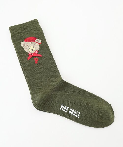 くまの可愛らしいお顔をモチーフに左右それぞれにあしらったソックス。