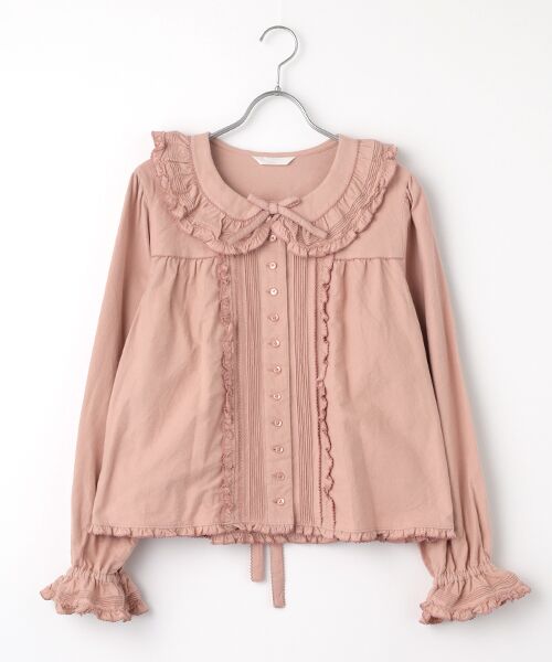 丸みを帯びたフリル襟が可愛らしいブラウス。フロント部分にはタックとフリルを重ね合わせた比較的シンプルめなブラウスで着合わせがしやすいタイプ。表面を起毛させたウォーム感のあるネル起毛素材を使用。中肉厚でソフトな肌触りで今のシーズンにピッタリな素材です。シンプルに可愛く使いやすいアイテムに仕上がったので、通年通して着やすい綿ブロード地でもご用意しております。シーズンオフでも楽しめますように。
