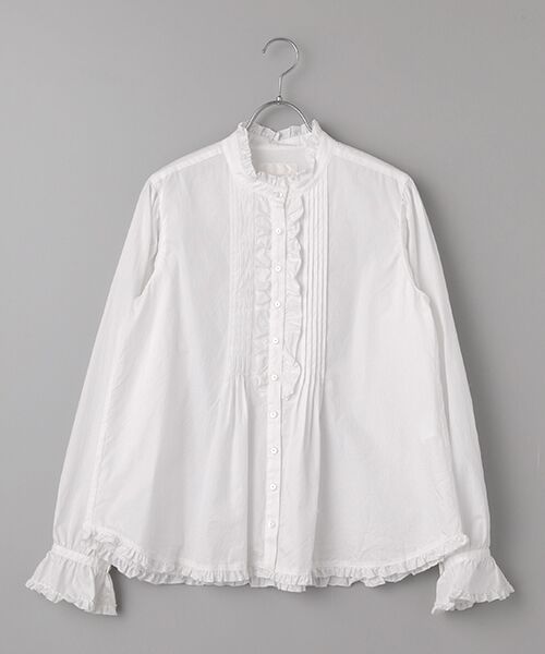 さらりと着やすいスタンドカラータイプのブラウス。フロント部分にはタックを重ね合わせて、軽めのフリルの縁取りを添えて上品な可愛らしさをプラス。表面を起毛させたウォーム感のあるネル起毛素材を使用。中肉厚でソフトな肌触りで今のシーズンにピッタリな素材です。シンプルに可愛く使いやすいアイテムに仕上がったので、通年通して着やすい綿ブロード地でもご用意しております。シーズンオフでも楽しめますように。