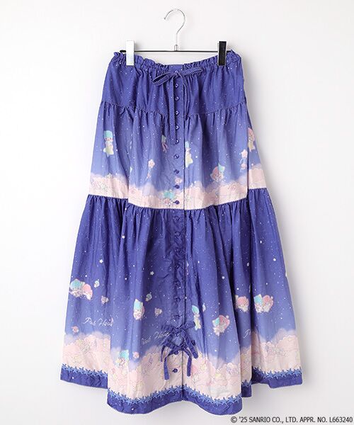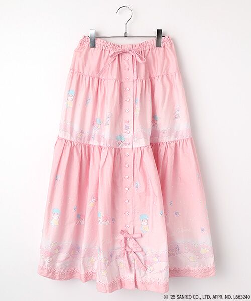 リトルツインスターズ(キキ&ララ)50周年のお祝いの気持ちを込めて、ピンクハウスのお洋服の柄として新たに描き起こしレイアウトしたテキスタイル。
