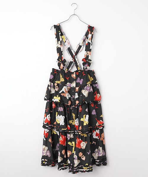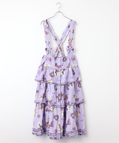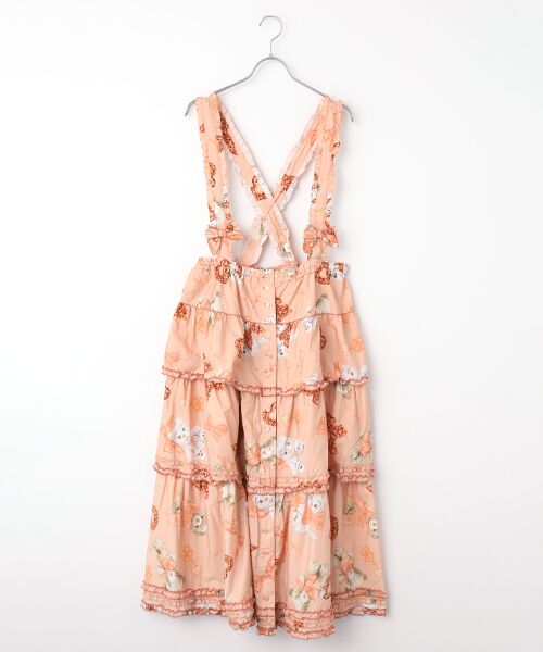 吊り紐が付いていて吊りスカートとしてもお楽しみいただけます。紐の先にはリボンモチーフをあしらって可愛らしく。