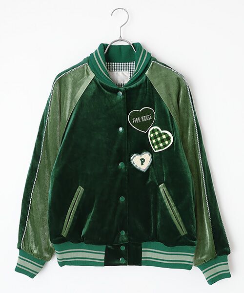 配色ベロアがウォーム感たっぷりなスタジャンタイプのブルゾン。