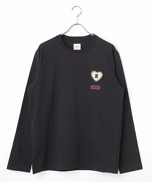 左胸にKロゴの入ったミニハートワッペンをワンポイントにしたシンプルな長袖カットソーは、トップスとしてはもちろん、インナー使いとしても使えるアイテムに。ワッペンの下にはロゴネームを添えて。身ごろには、やや薄手でありながら適度なハリコシのある14/1BD天竺素材を使用。コンパクトな表面感でカジュアルな仕上がりに。