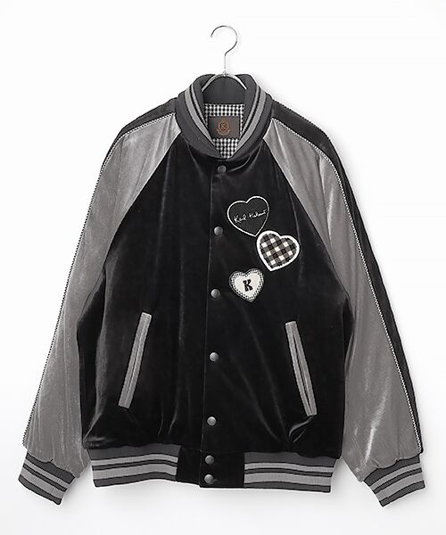 配色ベロアがウォーム感たっぷりなスタジャンタイプのブルゾン。